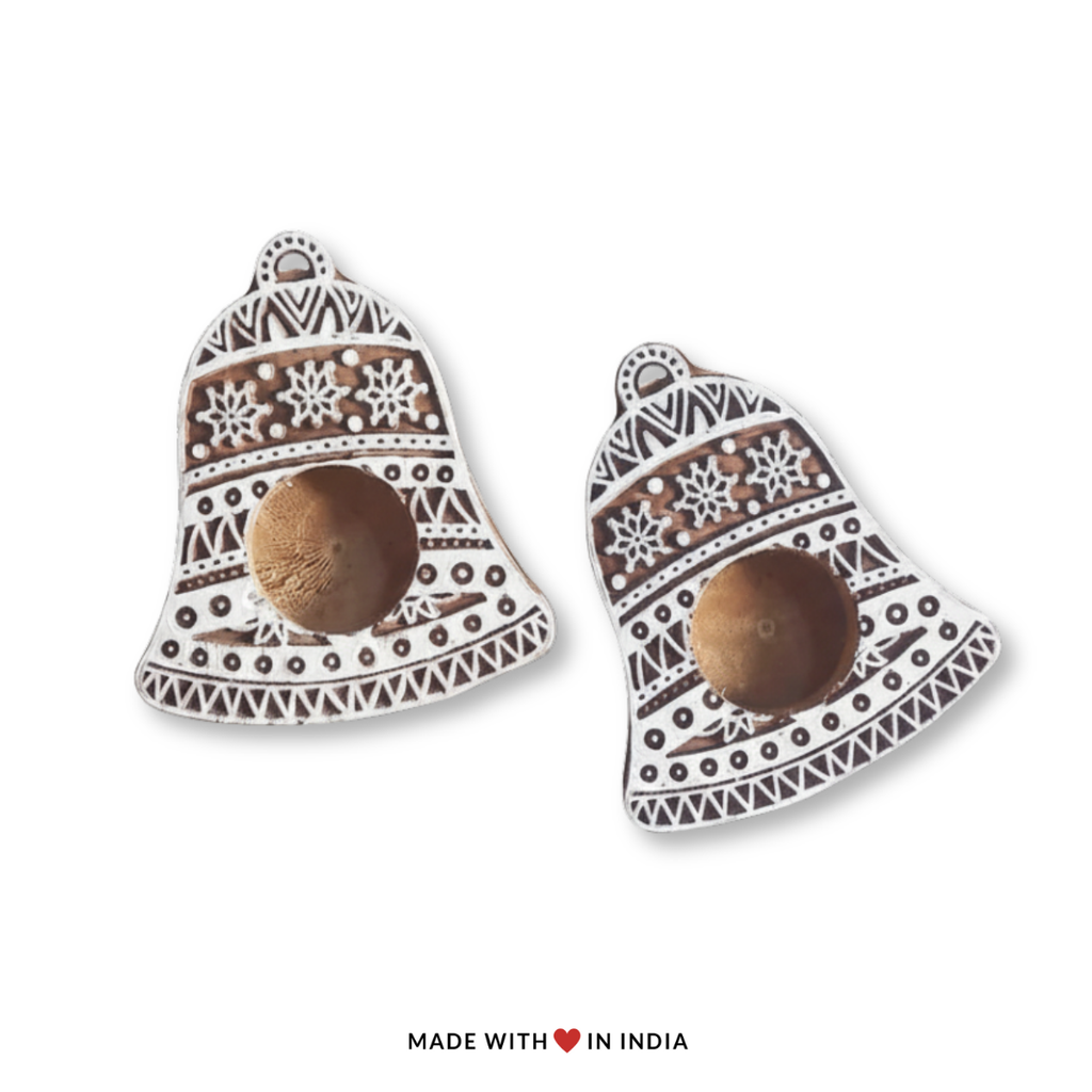 Handcrafted Christmas Bell Themed Wooden Printing Block Tea Light Holder